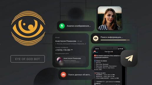 Известный во всем СНГ телеграмм бот Глаз Бога уже почти год не сходит с первых полос множества новостных агентств. Программа Глаз Бога для поиска людей завоевала огромную популярность у многих пользователей. Она удобная, позволяет получить огромное количество информации о человеке: узнать точный адрес, полное имя, место работы. И все это, имея в наличии минимум стартовой информации. Зачастую для поиска достаточно лишь одного факта: например, его номер телефона. Указывайте номер телефона человека в приложении Глаз Бога и можете абсолютно бесплатно получить самую подробную информацию о нем...