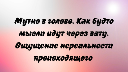 Мутно в голове. Как будто все мысли идут через вату. Как будто всё окружающее нереально. Что это? Это одно из состояний, с которым мы работаем. Которое можно убрать с помощью аутоординационной психотерапии. Что это ещё? Это дверь, в которую стучится психика человека с просьбой 🆘 помочь ей. Это только вершина айсберга: мутная голова/ощущение ваты в голове. Так психика показывает, что человек накопил (неосознаваемо, конечно) в неё много разных болей. Проблема гораздо глубже. И не только - что он накопил, а ещё - почему так произошло...