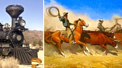 Дикий Запад США. Железная дорога, лонгхорны и ковбои