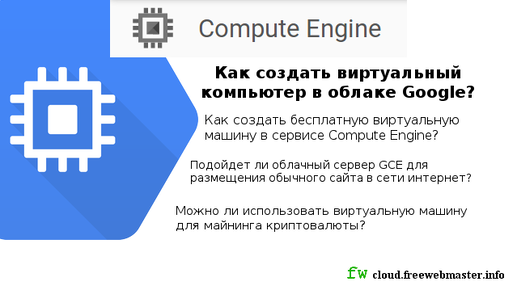 Как создать виртуальный компьютер в облаке Google? Сервис Google Compute Engine позволяет создавать и запускать виртуальные вычислительные машины в облачной платформе Google Cloud Platform. Как создать бесплатную виртуальную машину? Подойдет ли облачный сервер GCE для размещения обычного сайта в сети интернет? Можно ли...