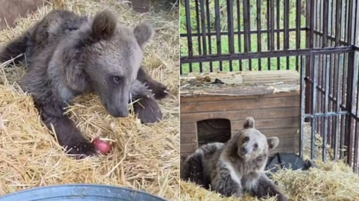Ломает вольер и лакомится орехами: попавший под колеса автомобиля в Северной Осетии медвежонок идет на поправку