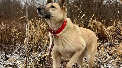 Санта - буквально грациозная лань.🥰 Она статная и робкая. И ох уж эти её игривые ушки - одно всегда опущено вниз, а второе прислушивается к этому миру. Санта очень красивая собака. При этом самая настоящая трусишка, что не мешает ей любить прогулки. Второй выход в поля с этой леди, и хвост Санты уже не норовит спрятаться под животом, а еда из рук волонтёра - что-то естественное. Будьте мягкими, предсказуемыми и спокойными - эта девочка раскроется с вами🙏. Санта очень комфортная для прогулок собака...