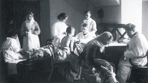 На 10 000 человек населения в царской России имелось 1,6 врача, 1,7 фельдшера, 1,7 акушера и повивальной бабки, в сельской местности 1 врач приходился на 26 тыс. человек. Не надо даже сравнивать, понятно, что в европейских странах эти показатели были выше на 3-4 порядка. По данным на 1900 год, в России из 1000 новорождённых в возрасте до 1 года умирало 260 младенцев, а через 10 лет — более 300. Основными причинами высокой детской смертности были отсутствие медицинской помощи и скудное питание. Среди болезней, от которых умирали дети, были скарлатина, корь, коклюш, тиф, оспа и дифтерия...