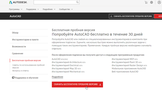 Самым простым способом скачивания является "пробная версия". Необходимо перейти по ссылке, а дальше следовать указаниям по установке...