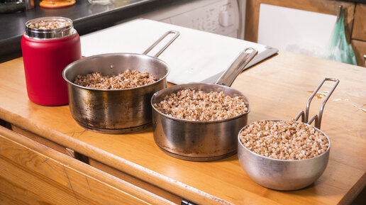 Гречка - очень популярный в России продукт. Сегодня мы разберем 4 способа ее варки. На одну порцию гречки всегда берем две порции воды. Первый и самый простой способ варки гречки: Гречку промываем. Добавляем воду, ее должно быть в 2 раза больше гречки. Доводим до кипения, убавляем огонь, накрываем крышечкой и засекаем примерно 15 минут. Солим по вкусу. Второй способ: Эту технику используют, в основном, в столовых, а также иногда и в ресторанах. Технология немного другая. Промываем гречку и, не заливая водой, ставим на огонь...