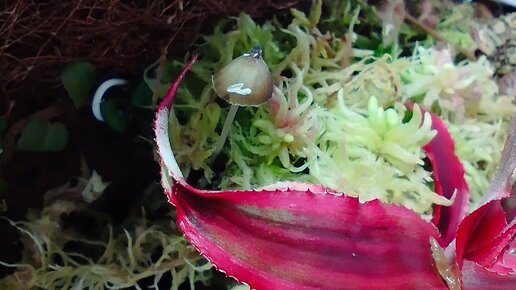 Первое. Во флоре вырос гриб. На мой взгляд - поганка обыкновенная. Но любопытство юного цветовода требует пересадить гриб в банку и наблюдать. Попробую, если не сломаю. Далее... Любовь моя хойя Имбриката Imbricata сменила гнев на милость и распластала новый лист по предоставленному ей куску коры. Обожаю! Фикус Пумила Вайт Санни прëт как не в себя. Уже обещала срезать на обмен, есть что. Новый флороэксперимент. Дошли руки до пучка мха и второго папоротника, купленного у аквариумистов. Взяла банку, красиво там всë разложила...