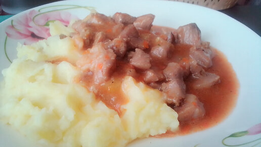 Гуляш из свинины, вкус как в детском саду из меню СССР, с подливой и рожками на гарнир