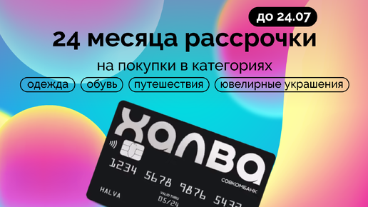 Оформи карту рассрочки «ХАЛВА» по уникальной ссылке до 31.07 🎁 Ссылка на карту: https://gbplus.link/gwv4JG и получи: — 10 месяцев рассрочки на все без переплат с подпиской «Халва.Десятка»; — 10% на остаток по накопительному счету; — кэшбэк до 10% с подпиской «Халва.Десятка»; — повышенный кэшбэк или увеличенную рассрочку у 250 000 магазинов партнеров: — М.Видео рассрочка до 3х месяцев, — OZON рассрочка до 1-го месяца, — Lamoda рассрочка до 1-го месяца...