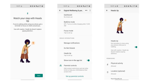 Мы живем в обществе, где больше нет ничего необычного в том, чтобы видеть лица людей приклеенными к экранам смартфонов. Хотя в большинстве случаев это может быть социальной проблемой, это может представлять угрозу безопасности, когда люди делают это во время ходьбы. Несколько месяцев назад Google представил простой способ напоминать людям, что при передвижении нужно время от времени не поднимать голову. Эта функция Heads Up, по-видимому, начинает развертываться на других телефонах, не являющихся телефонами Pixel, при условии, что у вас установлено цифровое благополучие...