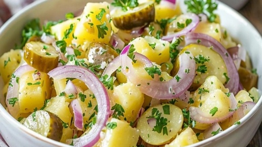 Поздняя осень, холодрыга, дождь, ветер, в квартире промозгло, батареи чуть теплые...Наверное, очень скоро и снег пойдет, а у нас все никак не наладят отопление. Обогреватель только и спасает. Все время хочется чего-нибудь с'есть. Самое простое приготовить только могу, лёжа в постели на боку. Например, вот этот салат, простой и вкусный. Картошка, соленые огурцы, красный лук, чеснок, много зелени, растительное масло с запахом. Все на глаз. Вкууууус...специфический! Все, как я люблю. Но не ем, низзя! Пока не ем, надеюсь, когда-нибудь, поем, как получше будет...
