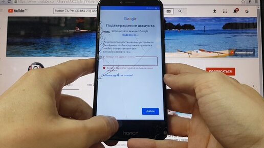 Удаление Google аккаунта после сброса пароля Honor 7A Pro