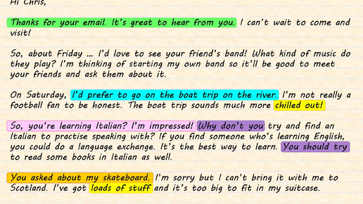 New Message From: Amy Subject: Quick update from me 🙂 Hi Chris, It’s been a while! How are you doing? Thanks for your last email. Sorry I didn’t reply sooner but I’ve been very busy. I thought I’d drop you a line to say ‘hi’ and tell you about what I’ve been up to. Things are going OK for me. Work is the same as usual. I’ve been doing a lot of overtime and saving money, so hopefully, I’ll be able to afford my own place this time next year. I’ve also been trying to get fit, so I’ve been jogging twice a week and I’ve joined a gym...