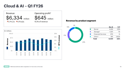 Компания HPE объявила финансовые результаты за I квартал 2026 финансового года, закончившийся 31 января 2026 года. Показатели в основном превзошли ожидания аналитиков благодаря растущему спросу на сетевые решения для ИИ, отметил ресурс Datacenterknowledge.com. Выручка компании выросла год к году на 18 % — до $9,30 млрд, что немного ниже консенсус-прогноза аналитиков, опрошенных LSEG, в размере $9,33 млрд (по данным Reuters). Скорректированная прибыль (non-GAAP) на разводнённую акцию в размере $0,65 превысила прогноз Уолл-стрит в $0,59...