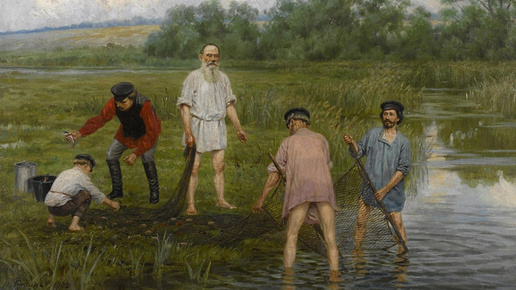 Отчего вдруг художник-баталист Наркиз Бунин покусился на святое, понимали не все. Его картина «Рыбная ловля» с четырьмя рыбаками и крестьянским мальчишкой всколыхнула общественность. Ведь двумя из этих рыбаков были писатель Лев Толстой и художник Илья Репин. Что такого? Есть ещё одна... гм... пикантная деталь. Рыбаки с бреднем, опасаясь намочить одежду, сняли штаны. И остались в одной рубахе, демонстрируя миру голые колени и не только. Подобное изображение уважаемых людей вызвало гнев у публики:...