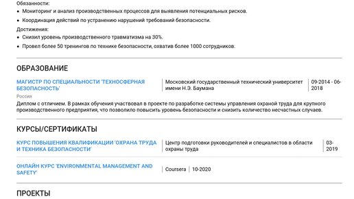 Найти актуальный пример резюме HSE manager – первый шаг к созданию сильной анкеты, которая привлечет внимание работодателя. Здесь вы найдете все необходимое, чтобы составить действительно эффективное резюме HSE менеджера, соответствующее текущим требованиям рынка труда. Мы собрали готовые примеры для специалистов разного уровня и разложили процесс создания резюме по полочкам, предлагая конструктор резюме. Изучив наш материал, вы получите Заголовок резюме — первое, что видят рекрутеры. Он должен четко отражать вашу специализацию и уровень профессионализма...