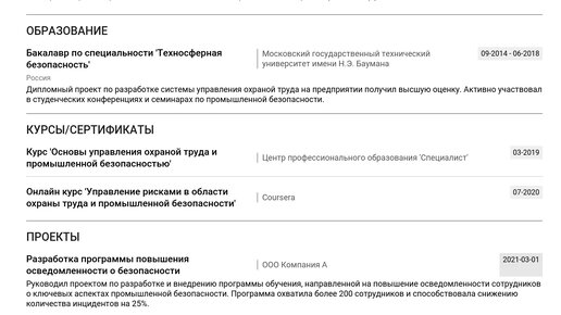 Изучение готового примера резюме HSE specialistа – это ключ к созданию собственного эффективного документа. Такой подход значительно повышает шансы на успешное прохождение отбора и получение желаемой работы. Заголовок резюме должен четко отражать вашу специализацию и уровень профессионализма. Для профессии "HSE specialist" важно указать конкретную специализацию, например, "Охрана труда и техника безопасности", "Экологическая безопасность" или "Промышленная безопасность". ✅ ❌ Для HSE specialist важно показать свою активность в профессиональной сфере...