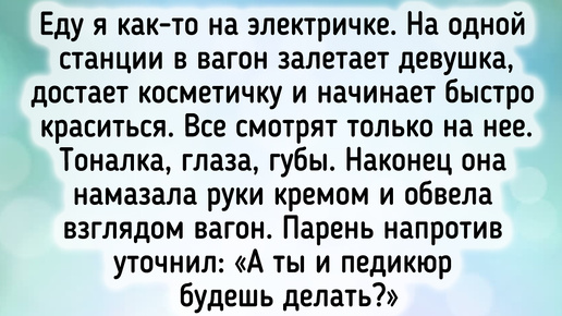 Пожалуй, все люди хотя бы раз ездили на автобусах и поездах, ведь это и экономно, и удобно. Но у общественного транспорта есть свои особенности: неизвестно, что может произойти в процессе и кто встретится в пути. Самый невозмутимый человек, которого я встречала в своей жизни, — девушка, сидящая впереди меня в автобусе. Женщина рядом с ней воскликнула: "Девушка, у вас таракан в волосах!" А та просто стряхнула его и поехала дальше с покерфейсом. Начало июня, мы с подругой едем из университета на автобусе...