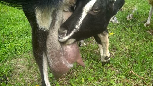 То что коза себя сдаивает, я давно подозревала. Приду её доить, а одна доля вымени у неё пустая, или иногда явно уменьшенная в объёме. А застала её за этим занятием во время окота у другой козы. Выглядело это забавно. Коза шустро сдоила себя, и стояла довольная как тот удав! Я слышала, что с этим можно бороться разными способами. Я ни один не стала применять. Почему? Во первых, коза выпив молочка, даёт ещё больше молока. Это точно. И в целом, особо общий надой не уменьшается. Во вторых коза упитанная, здоровая, шерсть аж лоснится...