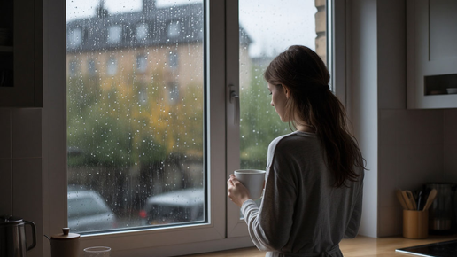 Даша стояла у окна на кухне, погружённая в свои мысли. За стеклом неторопливо стекали дождевые капли, рисуя на поверхности причудливые извилистые дорожки. Время от времени ветер усиливался, и тогда капли начинали двигаться быстрее, сливаясь в тонкие струйки, которые стремительно скользили вниз, словно торопясь куда‑то. В руках Даша держала чашку с чаем, но тот давно остыл – она даже не притронулась к напитку. Тепло чашки почти не ощущалось, да и аромат уже почти выветрился, оставив лишь слабый отголосок свежести...
