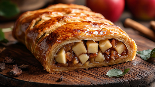 Яблочный штрудель — это традиционный десерт австрийской кухни, который завоевал популярность во всем мире. Этот хрустящий десерт с нежной начинкой из свежих яблок отличается богатым вкусом. В нашем рецепте мы расскажем, как сделать яблочный штрудель у себя дома. Для начинки: Для теста: В подходящей емкости смешайте воду, масло и муку. Посолите. Вымесите тесто, заверните в пленку и отправьте отдыхать полчаса. Почистите яблоки, уберите их сердцевину с зернышками, нарежьте плоды тонкими ломтиками. В миске смешайте плоды с сахарным песком, корицей, изюмом, измельченными орехами и соком лимона...