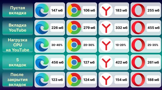 В этой статье вы узнаете какой браузер потребляет меньше всего оперативной памяти и какой браузер лучше выбрать для своего компьютера. Меня зовут Дима. Вы смотрите канал Клик Свай и мы начинаем! Браузеры Для сравнения я выбрал самые популярные и известные браузеры которые у всех на слуху, это: Критерии Сравнивать сегодня мы их будем по следующим критериям: Это самые основные критерии которые на прямую влияют на производительность вашего браузера а именно на то, на сколько мощный вам потребуется компьютер для быстрой и комфортной работы...