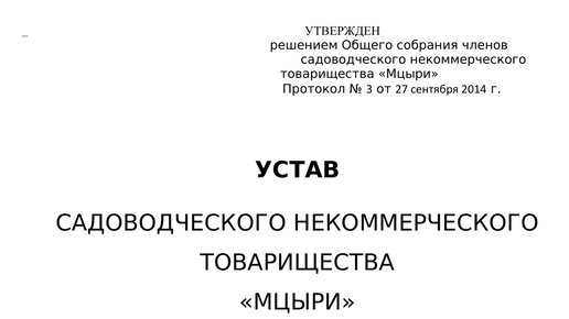 УСТАВ САДОВОДЧЕСКОГО НЕКОММЕРЧЕСКОГО ТОВАРИЩЕСТВА «МЦЫРИ» от 27 сентября 2014 г.