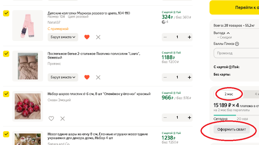 СПЛИТ от ЯндексМаркет - это очень удобная система рассрочки платежа для популярного маркетплейса. Если брать рассрочку на 2 месяца, то она будет без процентов, т.е. платите сейчас 1\4 от стоимости покупки и 3\4 - в течении 2х месяцев без переплат. 🔥🔥🔥ПОКУПАЙ В СПЛИТ👉ЗДЕСЬ👈 Как работает сплит ЯндексМаркет сам предлагает своим пользователям оформить фирменную рассрочку. Естественно, чтобы получить такое предложение надо "засветиться" в маркете - совершить несколько покупок, привязать реальный номер телефона и банковскую карту...