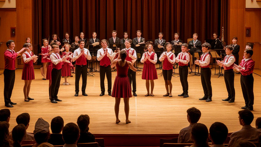 В актовом зале в школе. На репетиции. Картинка создана ИИ. Поднялись на третий этаж. Из открытой двери доносились звуки музыки. Ярослава заглянула внутрь. У самого края сидела Наталья Олеговна. Она увидела детективов и приглашающе махнула рукой. - Присаживайтесь. Вы как раз вовремя. Сейчас оттанцуют 9-ти-классники, их отпустят. Айгуль здесь. Я видела её. Она немного прихрамывает. Глава 81 Ярослав послал Наталье Олеговне смс-сообщение: «Нам нужно поговорить». Через 5минут директриса перезвонила. - Добрый день...