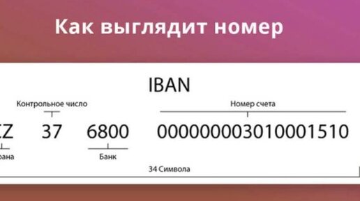 IBAN (International Bank Account Number) - это международный банковский номер счета, используемый для идентификации банковских счетов в транзакциях в разных странах. Он состоит из 34 символов, включая двухбуквенный код страны, двухкодовый контрольный знак и номер банковского счета.