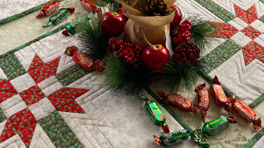 Идеи для Нового года Что я шью на заказ и для себя, конечно. Во первых, это дорожки. Их очень приятно шить. Изделие небольшое, это вам не покрывало! Можно подобрать разный дизайн, ткани надо не так много. А если еще и ткани с новогодней тематикой, то вообще красота. Вот такая салфетка, совсем не лоскутная😉, получилась из рогожки А лоскутная фантазия вообще куда только нас не заведет. Тут разную технику можно применить, начиная с простых квадратов, до барджелло А еще можно салфетки на стол...