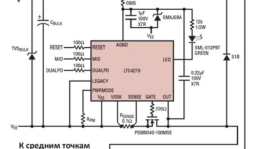 Друзья, попробую в этот раз формулами, стандартами и подробностями поменьше грузить – если зашли сюда посмотреть, значит, что такое PoE знаете. Итак, сравним Passive PoE и IEEE 802.3 PoE Вот типовая схема источника PoE IEEE 802.3bt – контроллер, регулирующий транзистор, обвязка – все вместе порядка 8-10 долларов. Монтаж простой, но тоже денег стоит, проверка ОТК опять же нужна. Для реализации Passive PoE достаточно, в принципе, подать в средние точки трансформаторов постоянное напряжение. Схема...