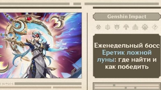 ㅤЕретик ложной луны — босс Подземелья наказания «Институт ложной луны» версии Луна IV в Genshin Impact. Является вторым из Предвестников Фатуи под кодовым именем Дотторе/Доктор, с которым впервые Путешественники лично встретились ещё в Сумеру, когда тот уже предпринимал попытки создать искусственное божество, а теперь стал им сам. ㅤТрофеи с босса — Маска мудрого лекаря, Оковы безумца, Еретический эликсир — необходимы для повышения уровня талантов Коломбины и персонажей последующих версий игры. ㅤБосс...