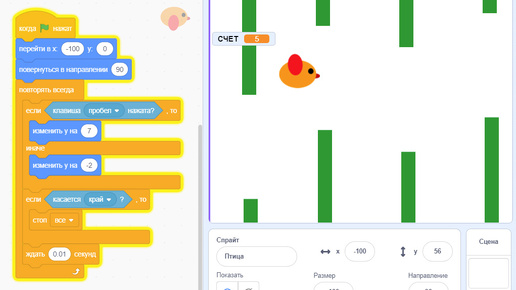 Игра "Летающая птица". Scratch 3.