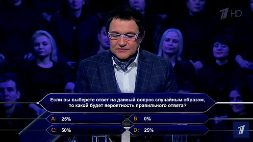 Все знают игру "Кто хочет стать миллионером?". Игра известна во всем мире: вопрос и четыре варианта ответа. Очень похоже на ЕГЭ. Только в игре ещё есть звонок другу, 50 на 50 и помощь зала. Так вот давайте представим, что 15-ый вопрос на миллион рублей звучит следующим образом. Если вы выберете ответ на данный вопрос случайным образом, то какой будет вероятность правильного ответа? И четыре варианта ответа: 25%, 0%; 50% и 25%. Да-да, 25% указаны в качества ответа дважды. В этом и есть подвох. Вы...