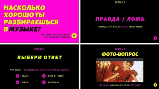 Викторины или квизы – это игровой способ взаимодействия с любой аудиторией. Каждый хотя бы раз не проходил мимо подобных заголовков: «Проверь свои знания по географии» или «Угадай по описанию писателя»...