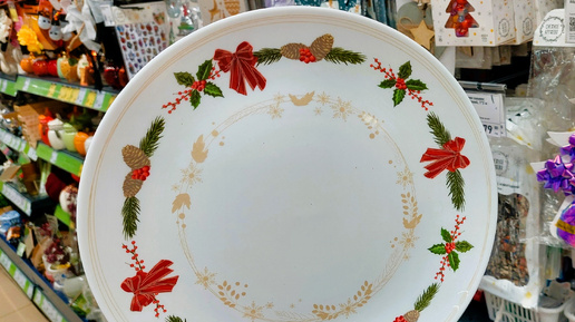 Симпатичную новинку обнаружила сегодня в Фикс Прайс. Привлекло мое внимание шикарное Бюдо с новогодним орнаментом. Д:27 см. Несмотря на то, что большой диаметр, блюдо легкое в руке. Состав: стекло упрочненное. Форма блюда - плоское, подойдет отлично для стопки блинов, а так же любой нарезки мясной или овощной. Прекрасно будут смотреться на нем маленькие канапе на шпажках. Цена 229 рублей. Производство Иран. Рядом по Акции Банка новогодняя с крышкой, 600мл по цене 174,5 рубля. По Акции декорация новогодняя, подвесная, 35 см...