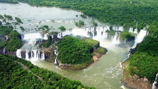 Природные особенности водопадов Игуасу Сам по себе комплекс представляет собой множество ниспадающих потоков, раскиданных по всему ущелью. Самый крупный водопад называют Горлом Дьявола, он является границей между упомянутыми государствами. У других ниспадающих потоков не менее интересные названия: Три мушкетера, Прыжок цветка, Две сестры. Фото под этими массивными потоками очаровательны, ведь в солнечную погоду всюду появляется радуга, а брызги освежают в жаркие деньки. История открытия Сегодня это место является популярным туристическим центром...