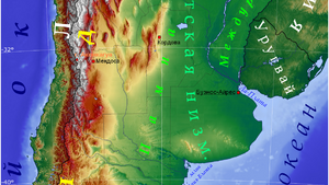 Аргенти́на (исп. Argentina [aɾxenˈtina]), официальное название — Аргенти́нская Респу́блика (исп. República Argentina [reˈpuβlika aɾxenˈtina]) — второе после Бразилии по территории и третье после Бразилии и Колумбии по населению государство Южной Америки, состоящее из 24 административных единиц: 23 провинций и федерального столичного округа Буэнос-Айрес. Крупнейшая по площади в мире из испаноязычных стран. Столица: Буэнос-Айрес. Член ООН (1945), ОАГ (1948), ВТО (1995). Название страны «Аргентина», является производным от латинского слова лат...