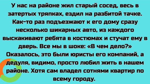 Когда люди судят по одежке, мир становится полон нелепых заблуждений. Но герои этих историй доказали: одна встреча — и все стереотипы летят в пропасть. Рекомендуем также заглянуть сюда 👇👇👇 В 2016–2017 году я работал в автосалоне в центре города. Товарищ мой трудился в корпоративном отделе, и как-то раз пришел к нему дедушка — в спортивках чуть ли не с дырками, в жилетке начала нулевых с кучей карманов и в шапке с помпоном. Естественно, мой коллега отнесся к нему не как к покупателю, а так, «как к мотыльку»...