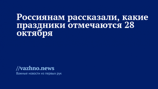 Во вторник, 28 октября, отмечается сразу несколько праздников. В этот день приходится Международный день анимации, а также в России празднуют День бабушек и дедушек. Православная церковь чтит память преподобного Евфимия Нового из Солуна. По народному календарю дата связана с днем Ефимия Осеннего. «Известия» рассказывают о значимых событиях 28 октября и предлагают советы от астрологов на этот день. Праздники 28 октябряМеждународный праздник 28 октября Международный день анимации В разных странах мира 28 октября отмечается Международный день анимации...