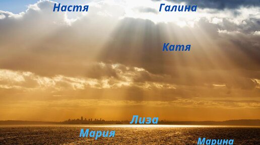 Что означают женские имена Анастасия, Катерина, Мария, Марина, Галина по русски, от какого природного явления они произошли