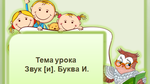 Урок: чтение. Тема: звук и буква И, и. Цель: научить различать и чётко произносить звук И в слогах, словах, познакомить с буквой И, и. Задачи: - познакомить с буквой и звуком И, дифференцировать заданный звук на слух; - развивать фонематический слух и фонематическое представление, память, внимание, мышление; - воспитывать умение слушать словесные инструкции и выполнять задания по ним, умение слушать друг друга, воспитывать интерес к учению. Ход урока. 1. Организационный момент. Мы пришли сюда учиться, Не лениться, а трудиться, Слушаем внимательно, Работаем старательно...