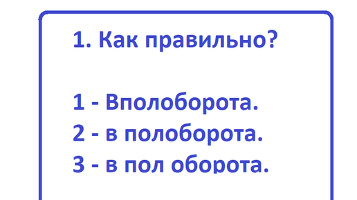 Приветствую читателей и подписчиков канала Тесты_математика! Ещё несколько слов, которые сразу и не напишешь правильно, если только вы недавно смотрели, как эти слова и выражения пишутся верно. Перечень слов и выражений, которые пишут правильно далеко не все. 1. Как правильно? 1 - Вполоборота. 2 - в полоборота. 3 - в пол оборота. 2. Как правильно? 1 - подчевать. 2 - потчевать. 3 - потчивать. 3. Как правильно писать? 1 - досчатая терасса. 2 - дощатая терраса...