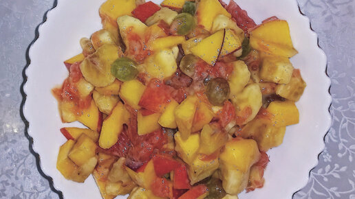 ФРУКТОВЫЙ САЛАТ 🍌🍇🍊🍑😋 Ингредиенты на одну порцию: * виноград сладких сортов; * 1 банан; * 1/2 красного грейпфрута или апельсина; * 1 персик. Нарезаем фрукты кубиками. Самый простой способ - заправить йогуртом (можно детским) или мороженым. Грейпфрут берём красного сорта, жёлтый будет горчить. Если принимаете таблетки для сердца, лучше заменить его на апельсин. Состав и количество ингредиентов можно менять по своему усмотрению. ЗАПРАВКИ Заправка №1. "Медовая" 2 ст.л. мёда; 0,5 ч.л. корицы; половинка лимона...