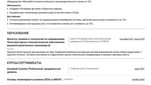 Пример резюме инженера-дизайнера 2025 - Руководство