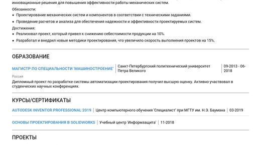 Пример резюме инженера-конструктора 2 категории 2025 - советы