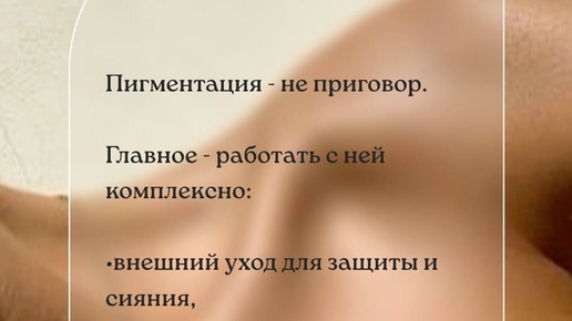 Пигментация - это не приговор, а сигнал организма. 🌿 Важно работать с ней комплексно: заботиться о коже снаружи и поддерживать её изнутри. 📌С помощью правильного питания,косметики, детокса, антиоксидантов и нутриентов кожа становится ровной, сияющей и здоровой...