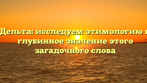 Дельта: исследуем этимологию и глубинное значение этого загадочного слова Исторический обзор Слово «дельта» произошло из греческого «ἅλς» (hals — море). В древнегреческом языке «δέλτα» (delta) обозначало букву «D», которая была похожа на треугольник (место, где дельта впадает в море) и расположена таким образом, что она образует угол в форме треугольника. С того времени и до наших дней этот символ стал ассоциироваться с притоками рек, которые впадают в море, образуя дельту...