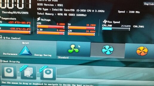 Привет подписчики! Сегодня мне довелось увидеть странную неисправность в компьютере. При нажатии на кнопку включения он шумит вентиляторами несколько секунд, изображения не даёт и выключается. После, снова, сам запускается, выдаёт сообщение, что проблема с излишней температурой и с излишним питанием процессора. Спонтанно, в любое время выключается, хоть через минуту, хоть через час. Матплата Asus P8B75-M LX Plus. Захожу в биос. Эта картина заставила меня махом дергануть сетевой шнур из блока питания...