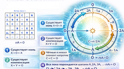 Я специально начинаю статью не с «Вихря» и не с L2/L3/L4, а с янтры “любой полярности”, разработанной В. Ленским, по одной причине: без янтры разговор о симметриях и фазах неизбежно превращается в метафоры. Ниже приведена универсальная янтра. 1) Как устроена янтра и как она “работает” визуально В минимально операциональном чтении янтра — это таблица отношений для локи мощности n: То есть визуально янтра работает как карта допустимых переходов/сочетаний: я выбираю два элемента (строка × столбец) и “считываю” результат в таблице...